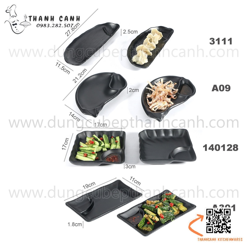 Bộ bát đĩa, cốc chén Melamine đen chuyên dụng nhằm đáp ứng nhu cầu dùng hàng hóa của các nhà hàng , quán ăn , quán nướng .