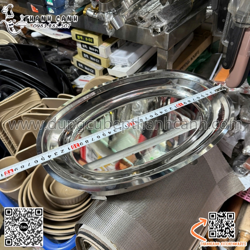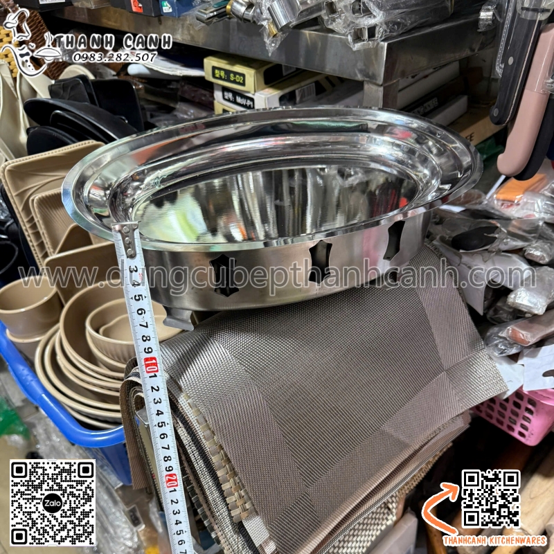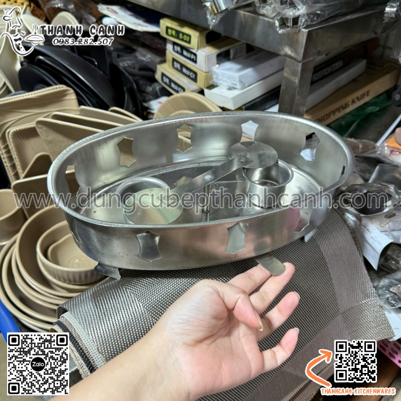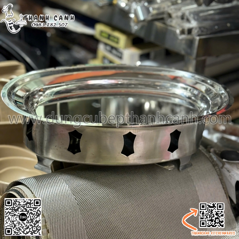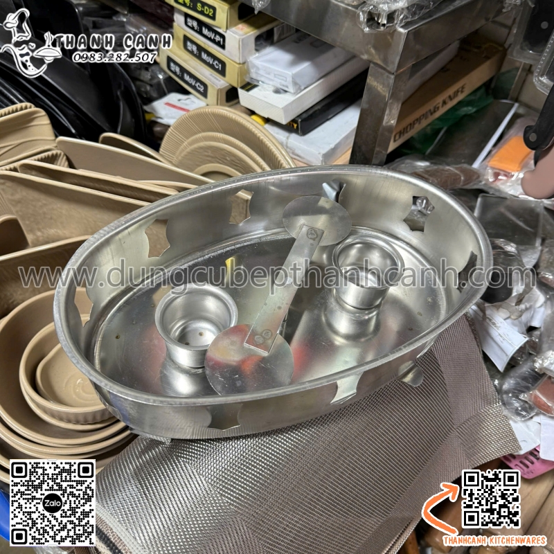 Bộ bếp hấp cá inox hình bầu dục kèm bếp nến bên dưới
