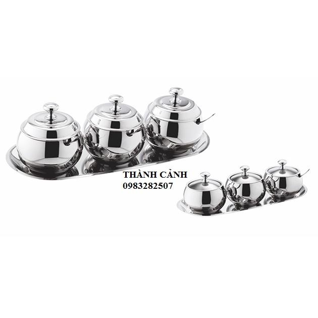 Bộ gia vị để bàn 2/3/4 chi tiết, Bình gia vị thuỷ tinh nhà hàng bếp ăn