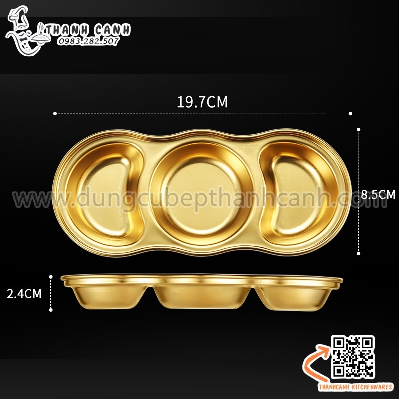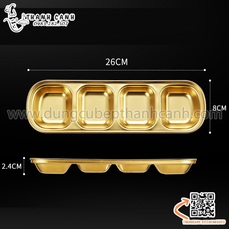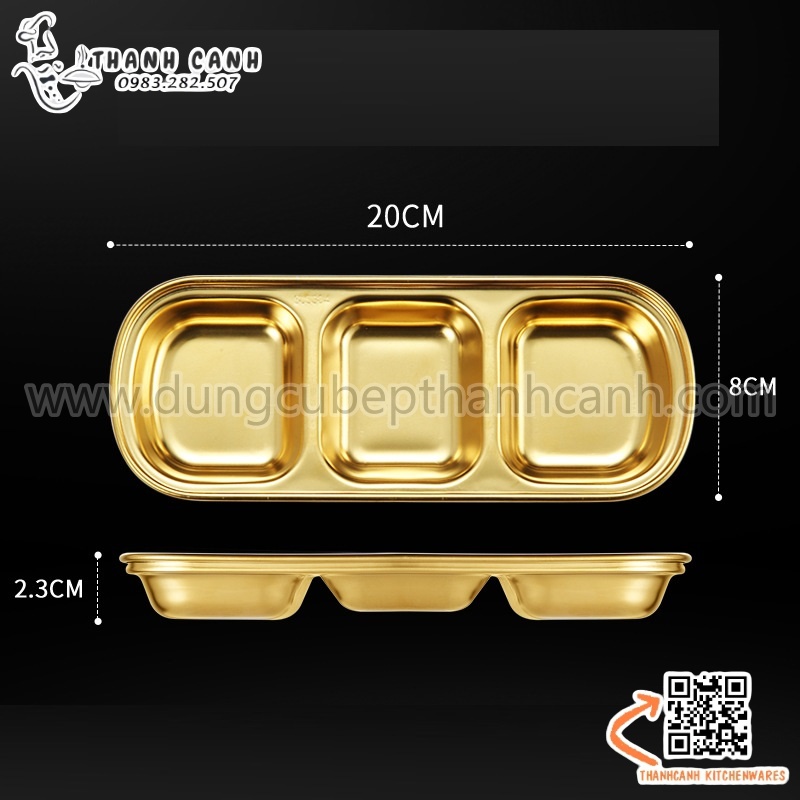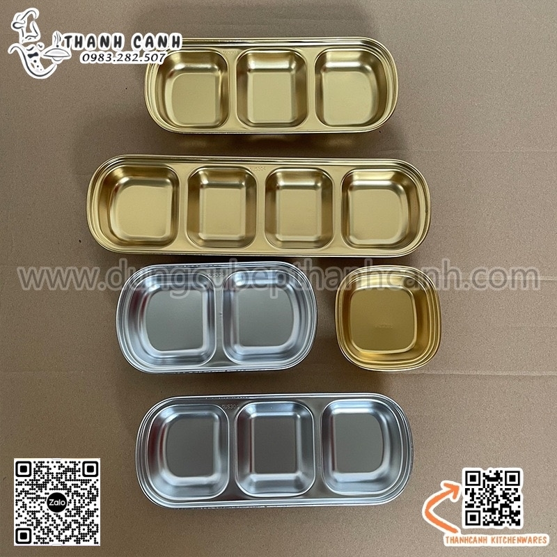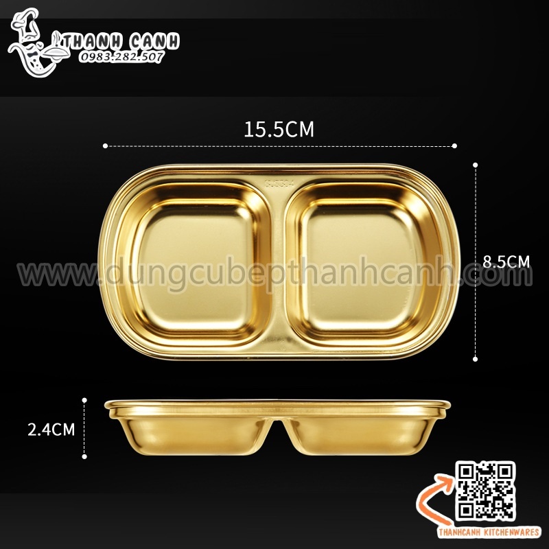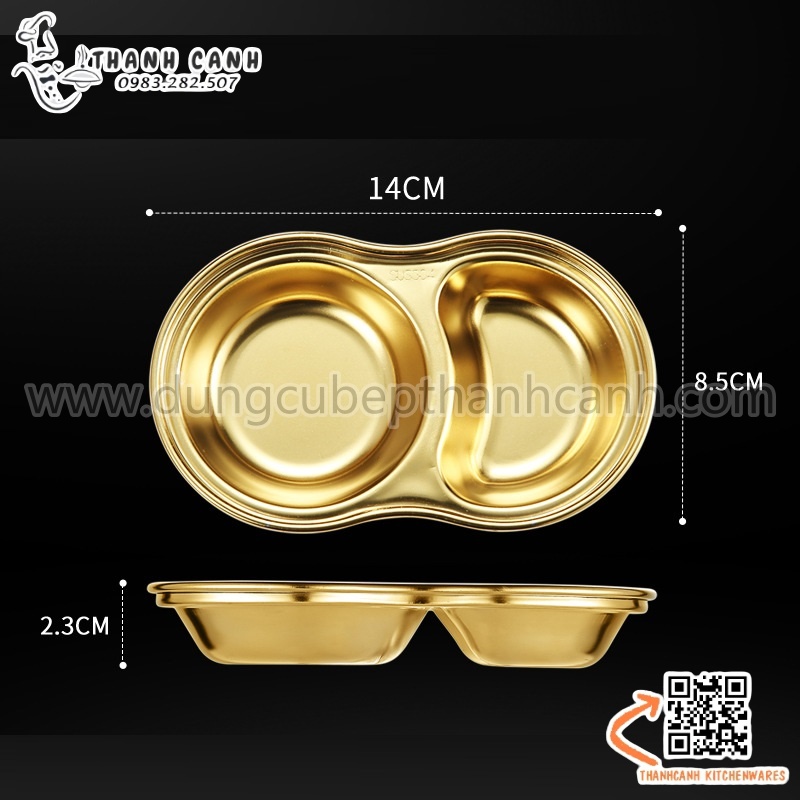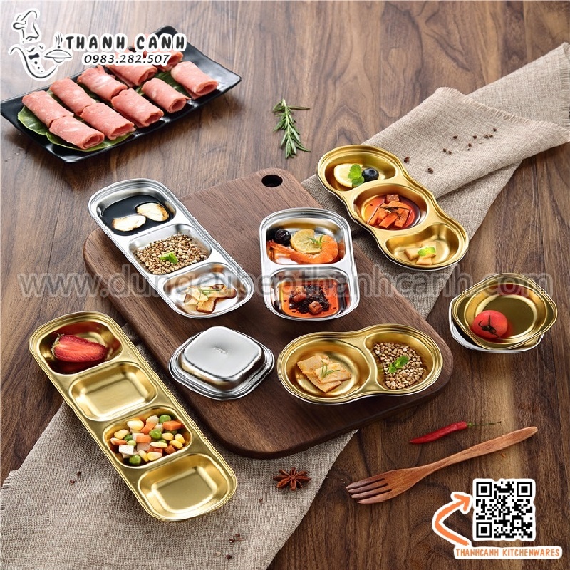 Khay, đĩa đựng gia vị inox 304 cao cấp hai ngăn phong cách Hàn Quốc