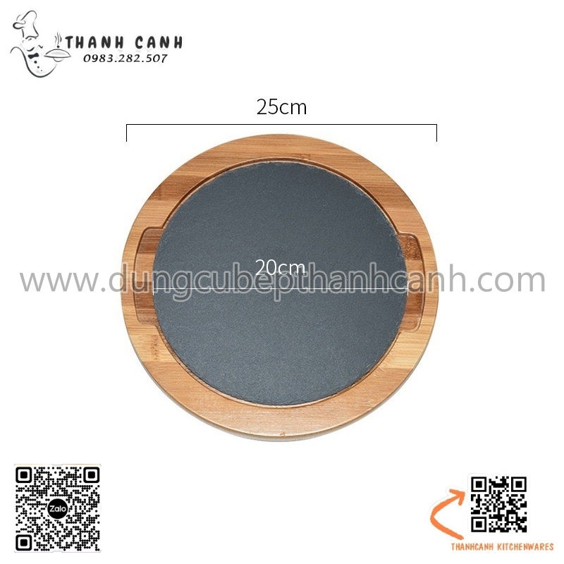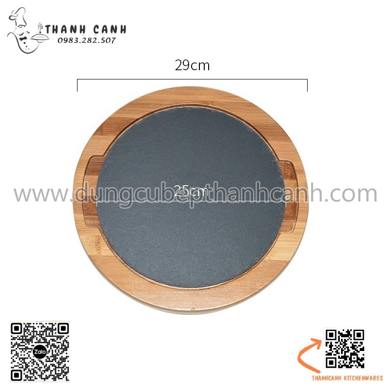Bộ đĩa đá đen trang trí hình tròn, decor, chụp ảnh thức ăn đi kèm đế gỗ