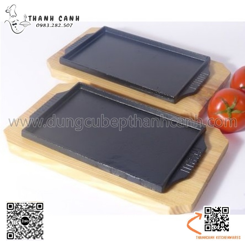 Dĩa gang chữ nhật có mẫu mã đẹp, chất liệu gang đúc bền chắc đi kèm đế gỗ cách nhiệt cao cấp