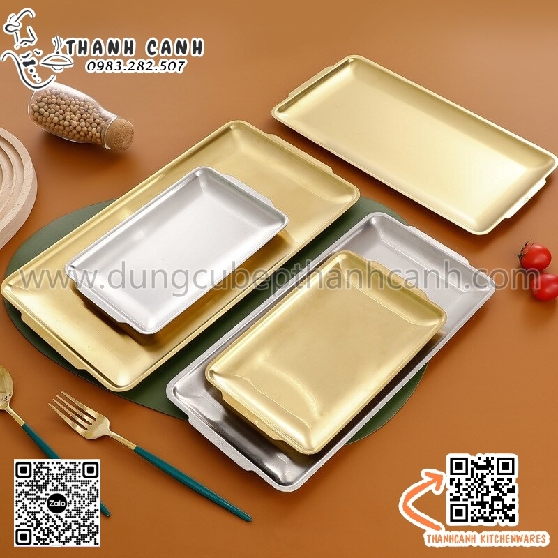 Đĩa inox Hàn Quốc hình chữ nhật màu trắng/ màu vàng