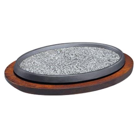 Khay gang nướng chữ nhật hình bầu dục dáng dài thân nhỏ đi kèm đế gỗ cách nhiệt