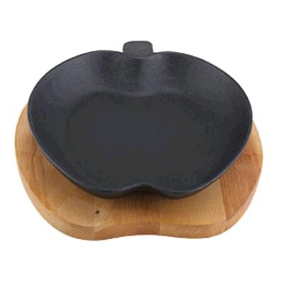 Đĩa nướng gang cách điệu , hình bản cuốc vẩy sơn đi kèm đễ gỗ cách nhiệt