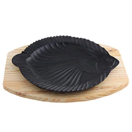 Đĩa nướng gang cách điệu , hình bản cuốc vẩy sơn đi kèm đễ gỗ cách nhiệt