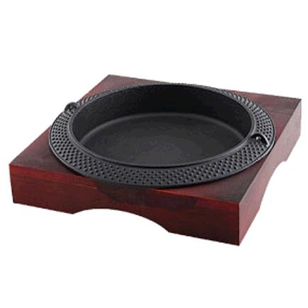 Đĩa gang nướng vuông gân có tay cầm đi kèm đế gỗ cách nhiệt