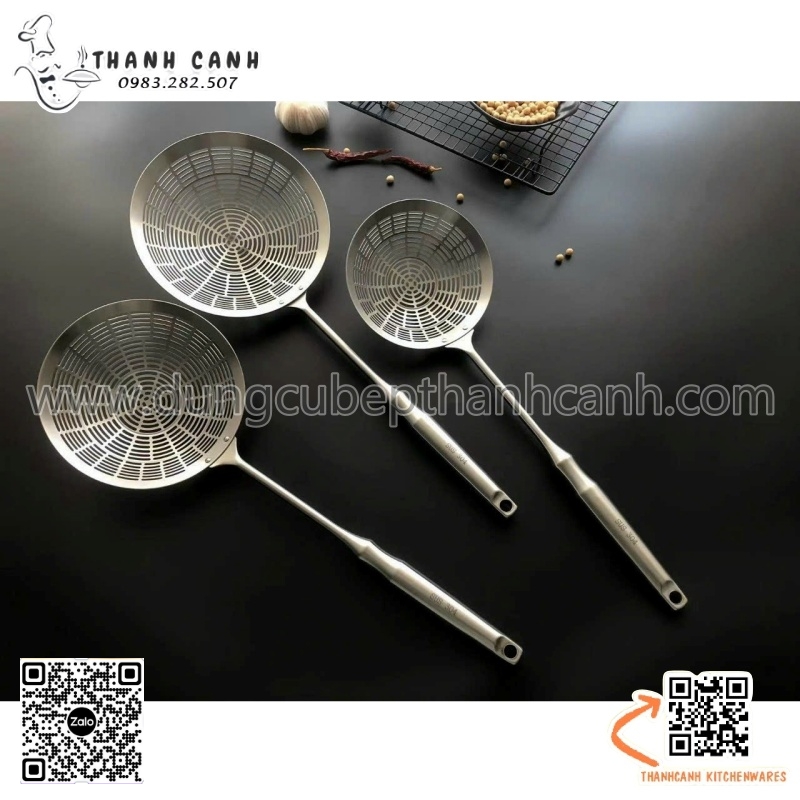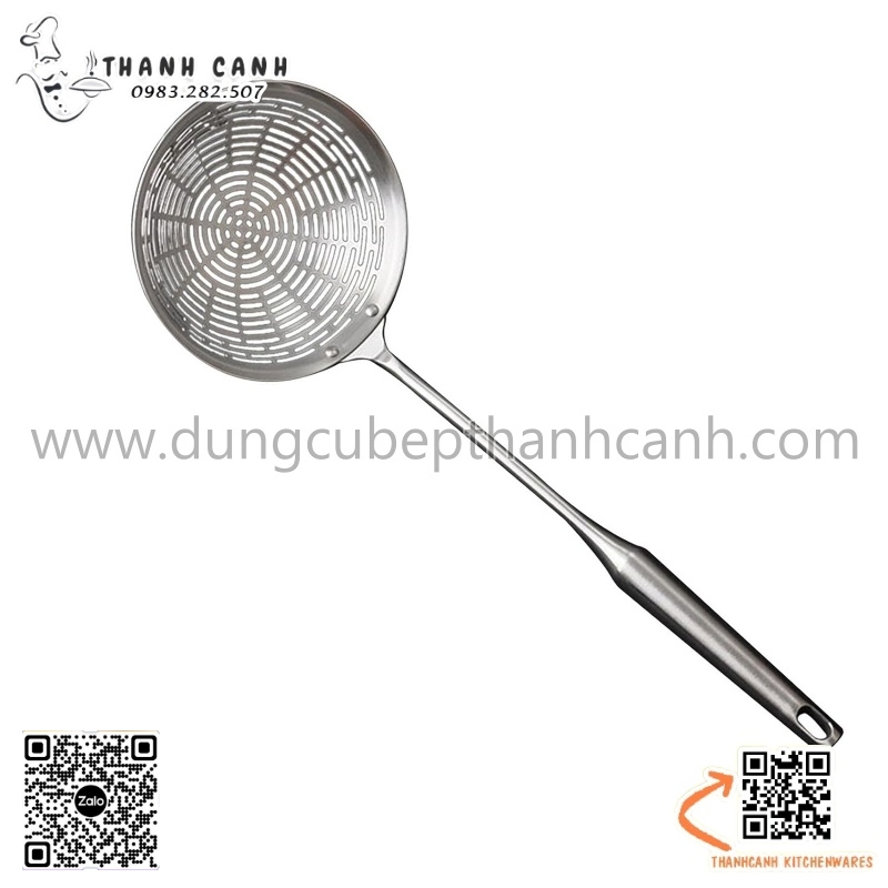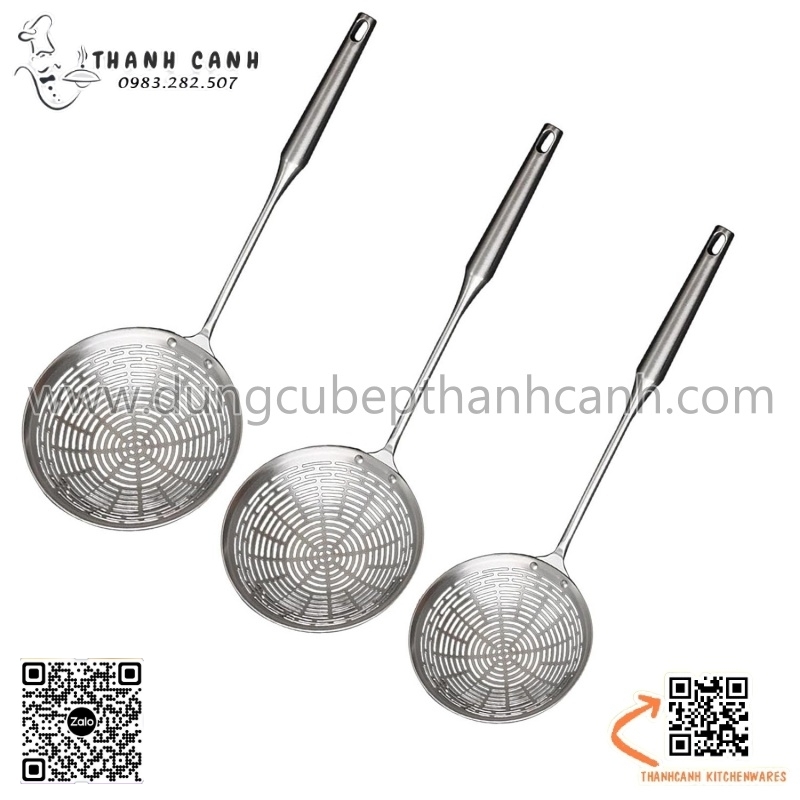 Vợt inox có tay cầm dài, cách nhiệt rỗng và ngăn ngừa bỏng tay. sử dụng thuận tiện cho mọi công việc nấu nướng. Có lỗ ở đầu tay cầm, rổ lọc tiện lợi để cất trong ngăn kéo hoặc treo, nhanh khô và tiết kiệm không gian.