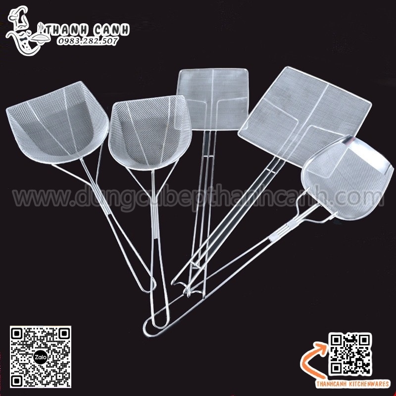 Vợt vớt đồ chiên mặt lưới có thể sử dụng cho món ăn thông dụng như chả giò, nem, đùi- cánh gà, bánh phông tôm... một cách đơn giản và an toàn