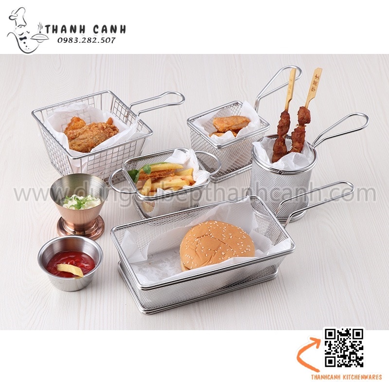 Có thể dùng rọ để trưng bày sản phẩm, phục vụ khách tại bàn hoặc chiên nhúng đồ ăn.