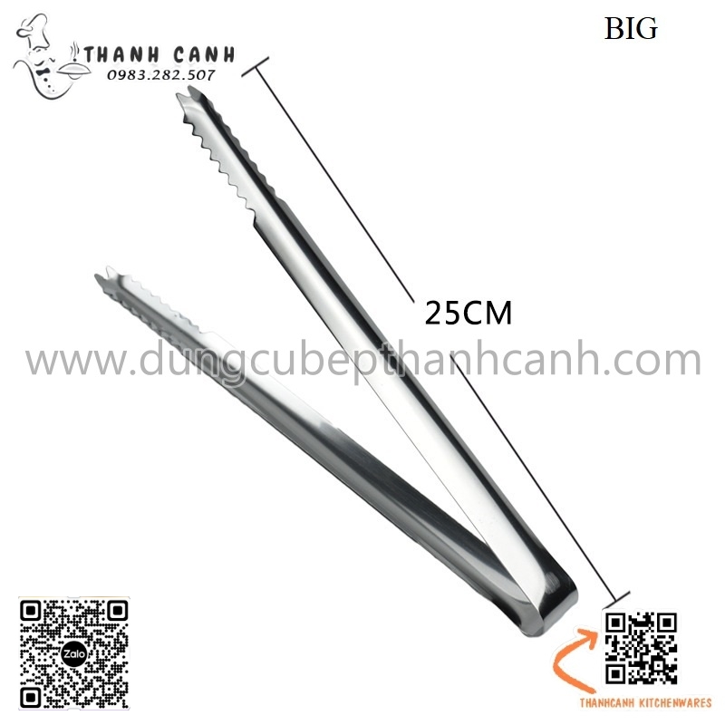 Kẹp được làm bằng inox 304, dụng cụ bếp chuyên dùng để gắp đồ ăn, gắp đá, gắp thịt nướng.Có thể tiếp xúc trực tiếp với thực phẩm và có độ chống ăn mòn cao.