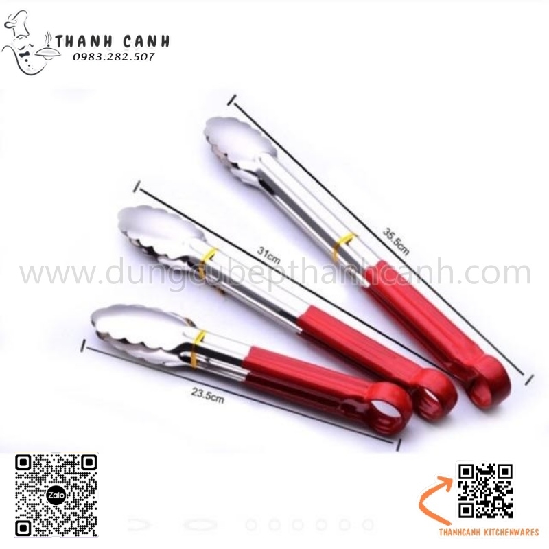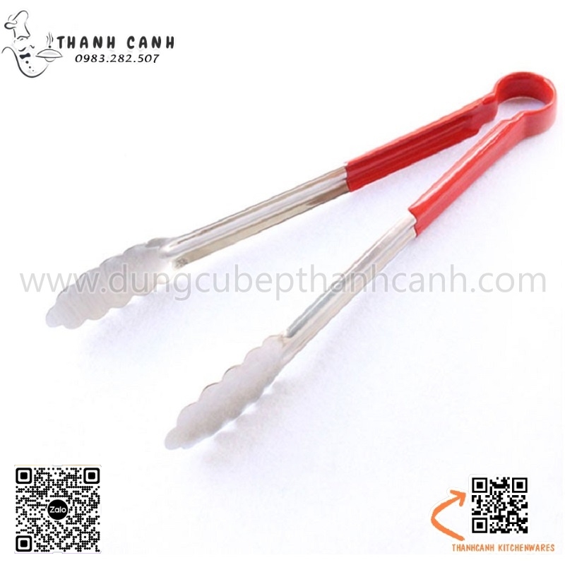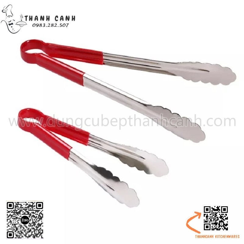 Kẹp gặp thực phẩm bọc nhựa màu đen, màu đỏ, nhiều kích thước khác nhau, gắp inox, kẹp inox