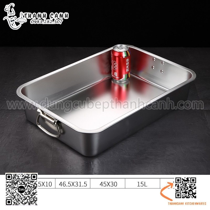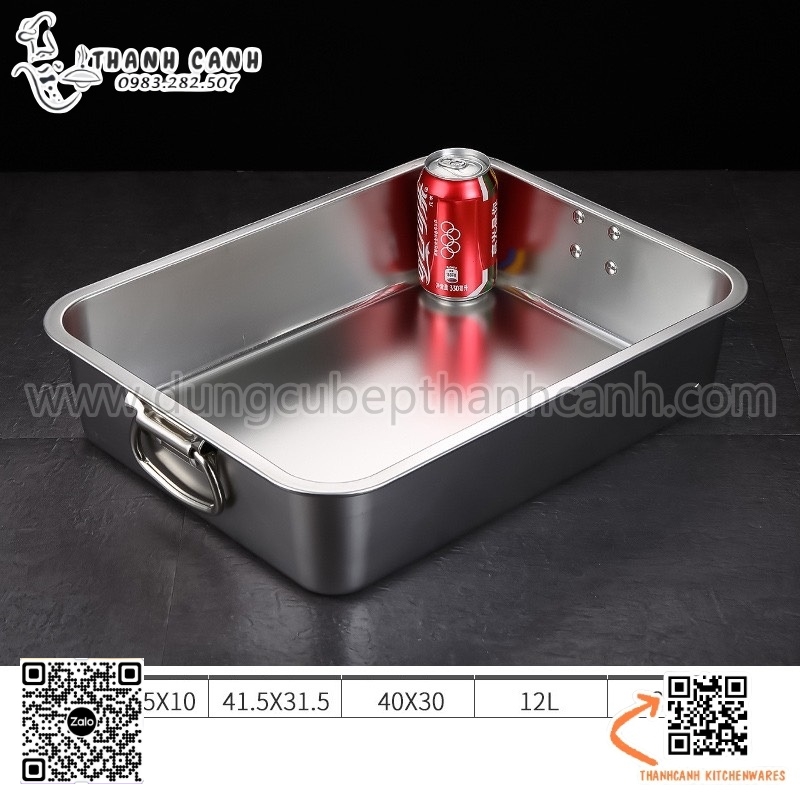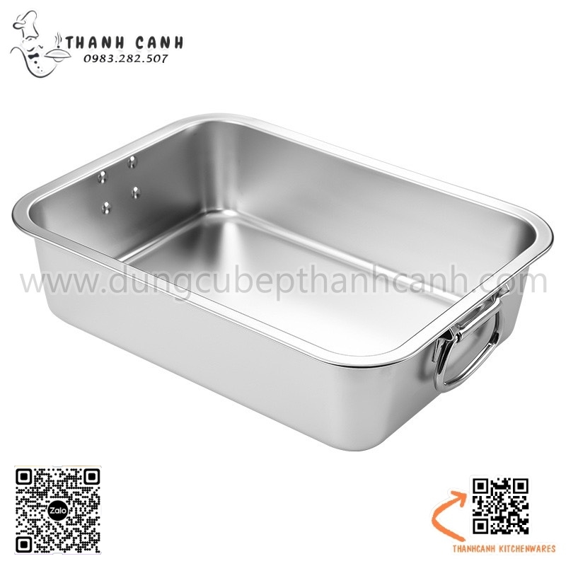 Khay inox chữ nhật được sản xuất trên công nghệ hiện đại, góc khay bo tròn, an toàn cho người sử dụng, dễ dàng rửa sạch (đặc biệt chỗ góc); khay có quai xách dùng vít tán thẩm mỹ, chắc, chịu lực tốt; vòng quai nâng/gập không chiếm diện tích khi xếp vào tủ, kho...