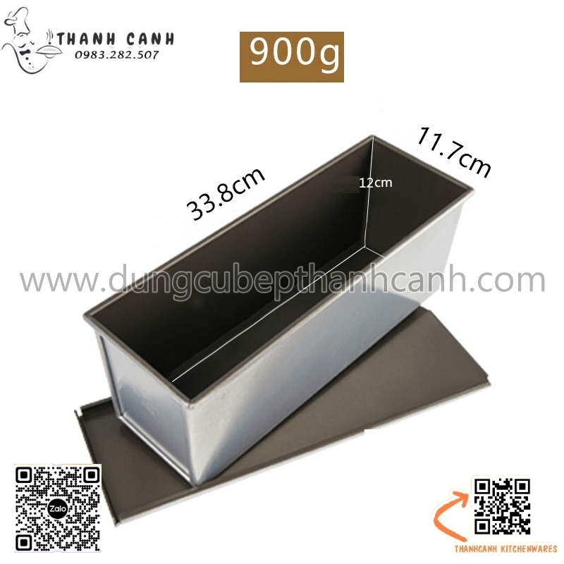 Form chữ nhật sâu lòng, có nắp trượt tiện lợi giúp tạo dáng bánh vuông đều, đẹp mắt