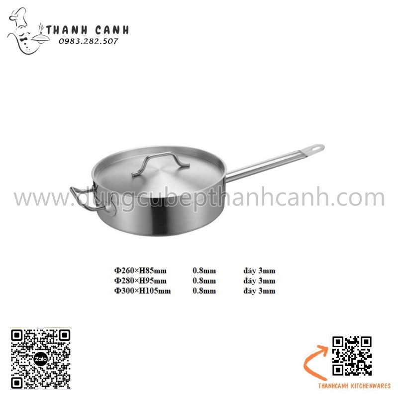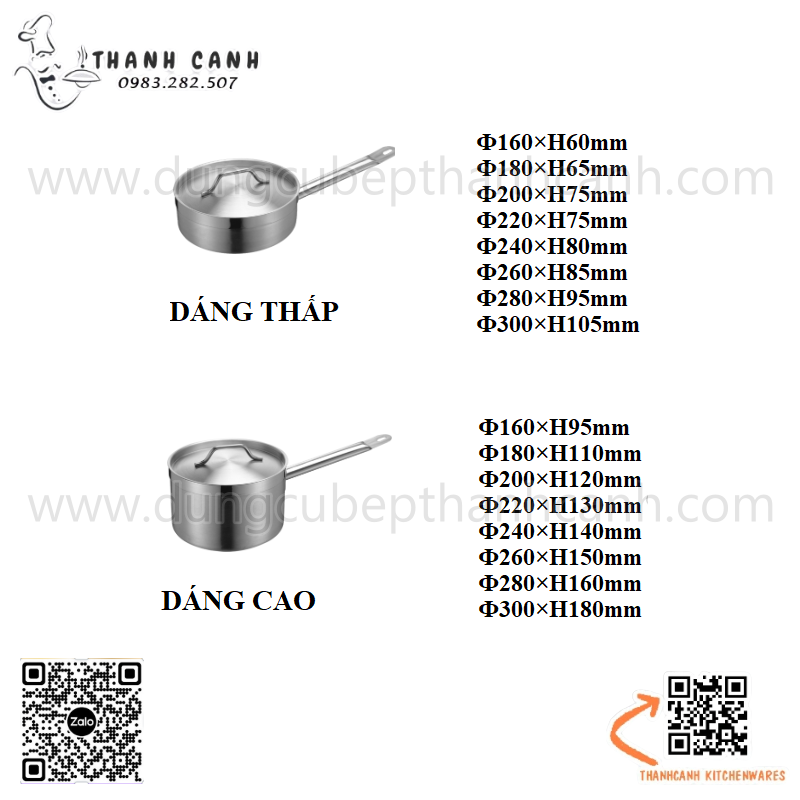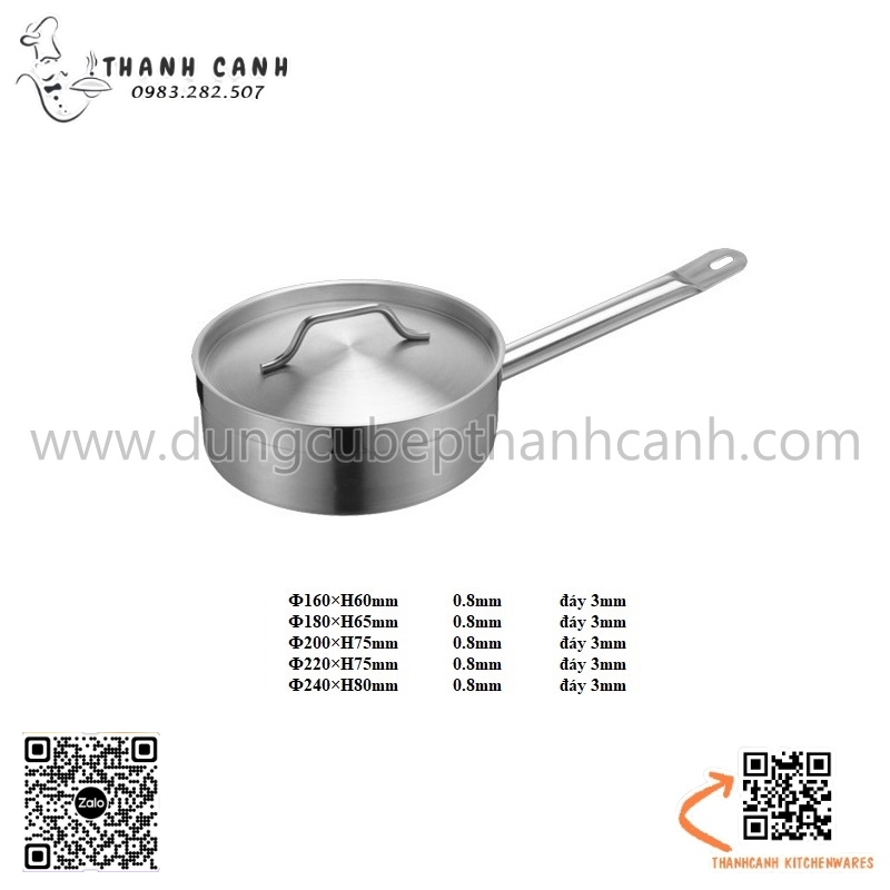 Nồi nấu súp inox thân thấp EAST, Nồi soup cán cầm inox 304 cao cấp dùng từ