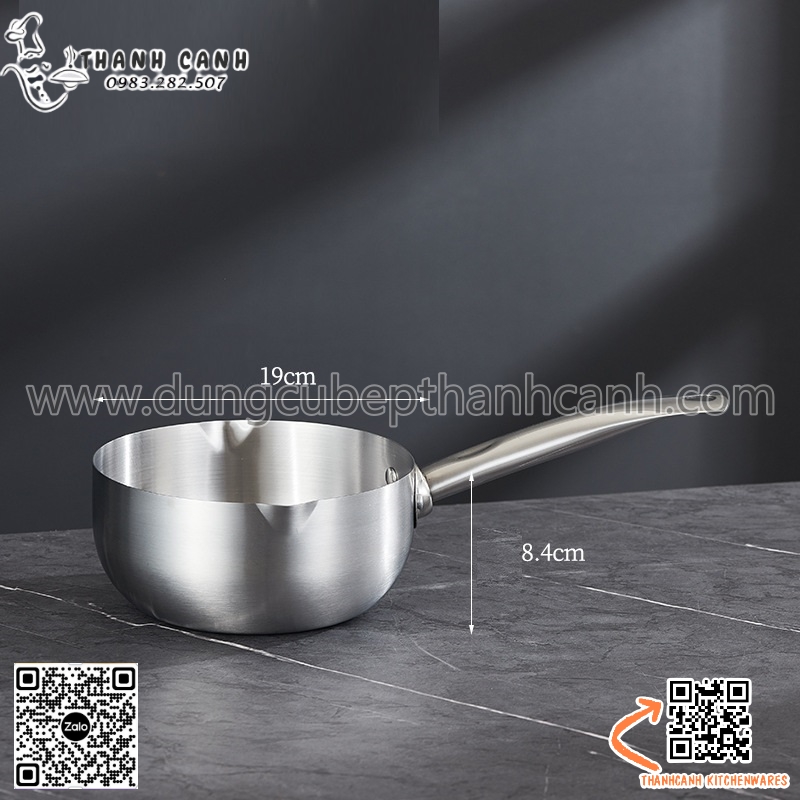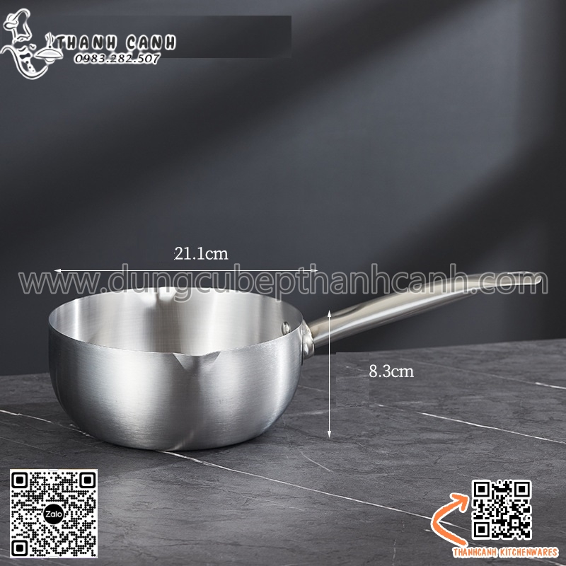 Thiết kế Cán Dài Tiện Lợi: Tay cầm chắc chắn, giúp bạn dễ dàng di chuyển, rót sốt hoặc quấy đều mà không lo bị nóng tay.