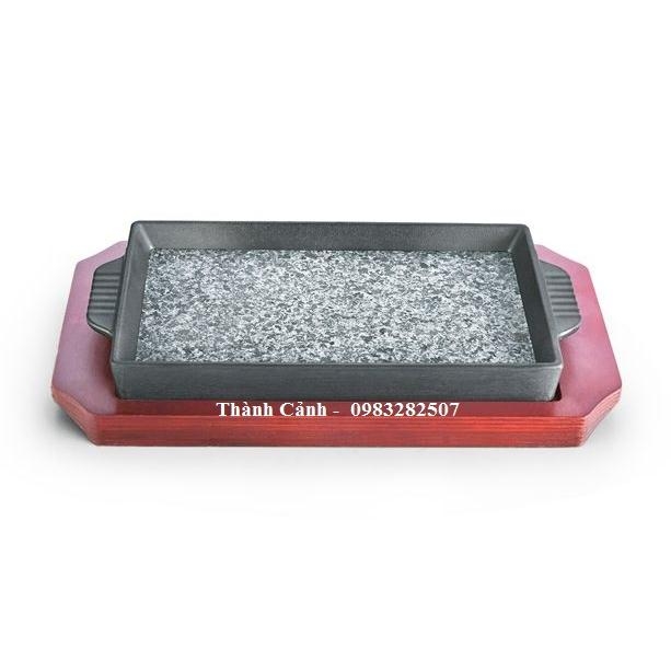 Chảo gang nướng hình chữ nhật 20x35cm,Đĩa nướng gang có tay cầm inox, đĩa nướng thịt bít tết
