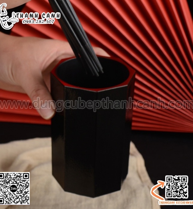 Sản phẩm ống đựng đũa muỗng bằng nhựa phong cách Nhật Bản màu đỏ đen giúp đựng dụng cụ nấu ăn của bạn được sạch sẽ và gọn gàng.