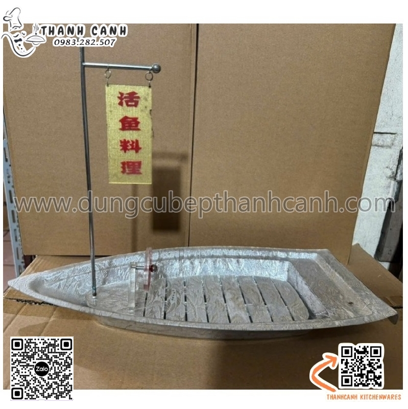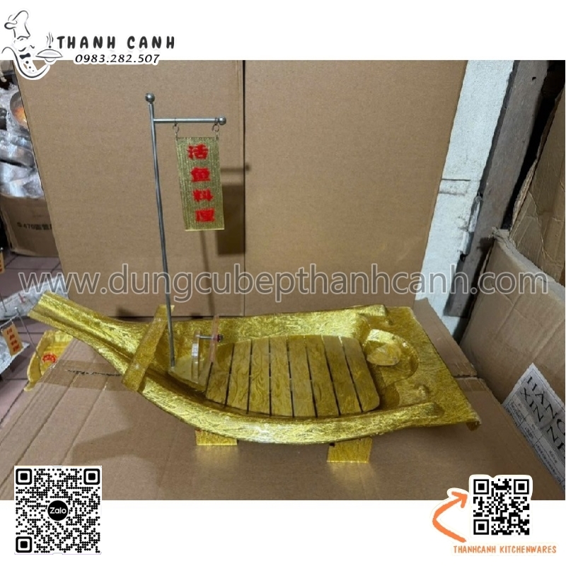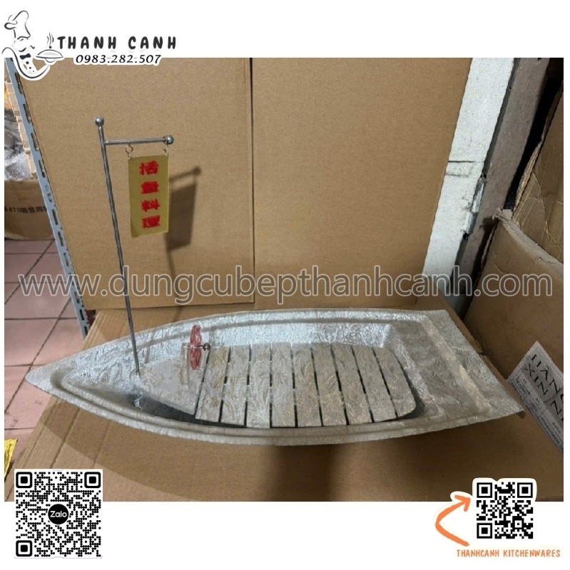 Thuyền nhựa sơn lấp lánh bày sushi, sashimi đồ ăn cao cấp