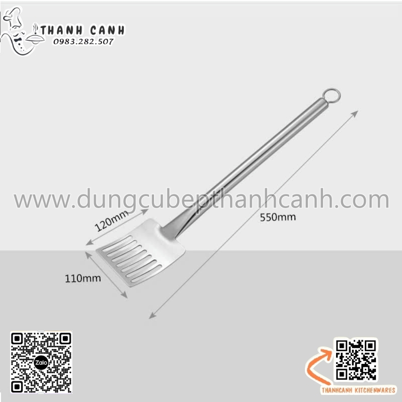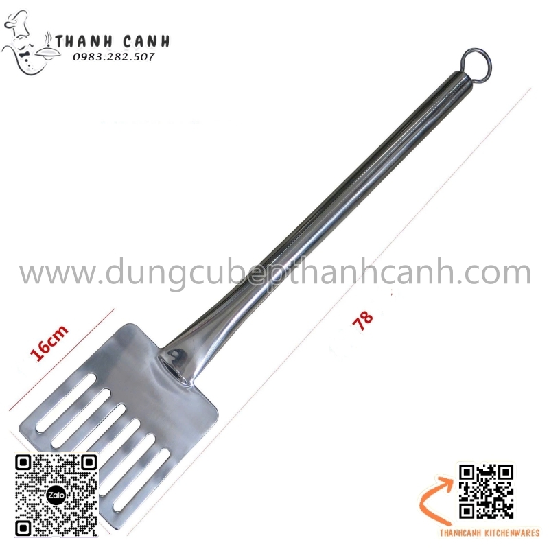 Cán cầm bằng inox với nhiều độ dài khác nhau giúp dễ thao tác xào trộn mà ko sợ bị bỏng,nóng.