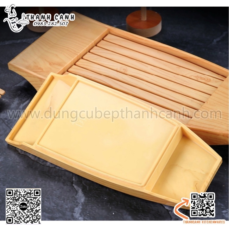 Xuồng nhựa đựng Sushi làm bằng chất liệu ABS có thể tiếp xúc trực tiếp với nước, dễ dàng lau chùi, vệ sinh, tẩy rửa.